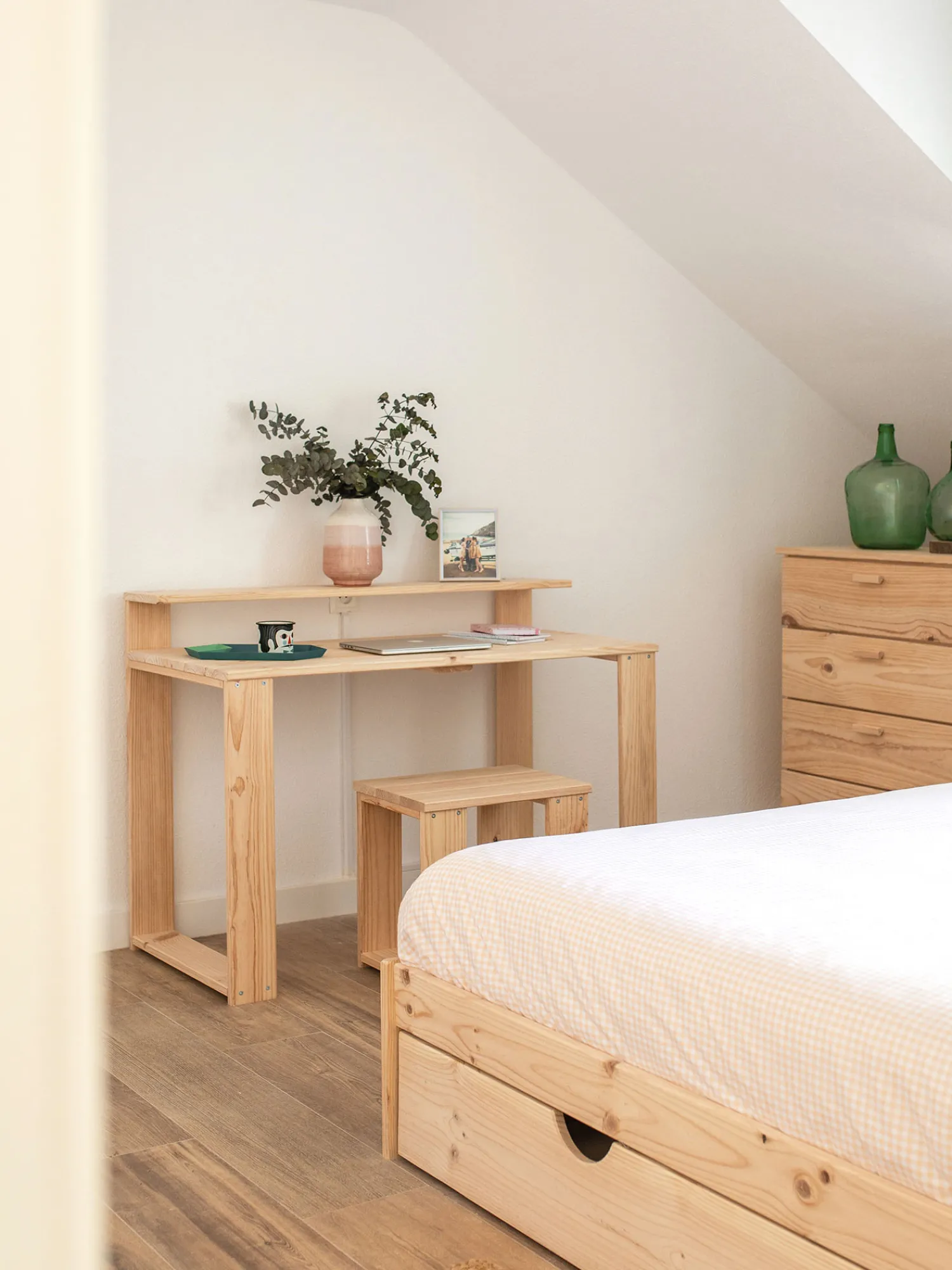 Este es un mueble sostenible y reciclable con certificación PEFC. Fabricado con madera maciza ecológica de pino insignis, procedente de bosques locales y sostenibles.