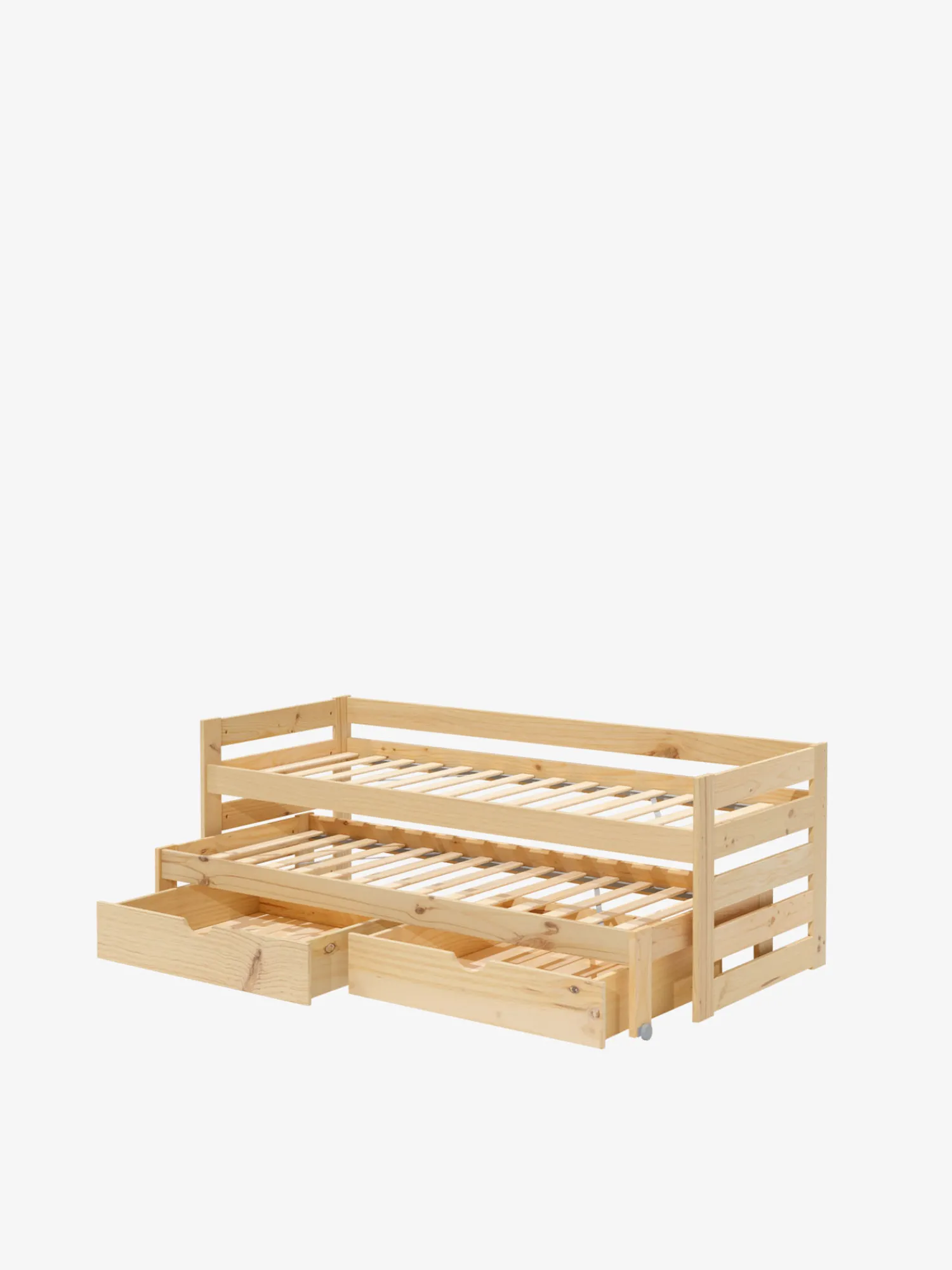 – Cama superior de 90×200 con cama inferior de 90×190 y cajones de 90×190.