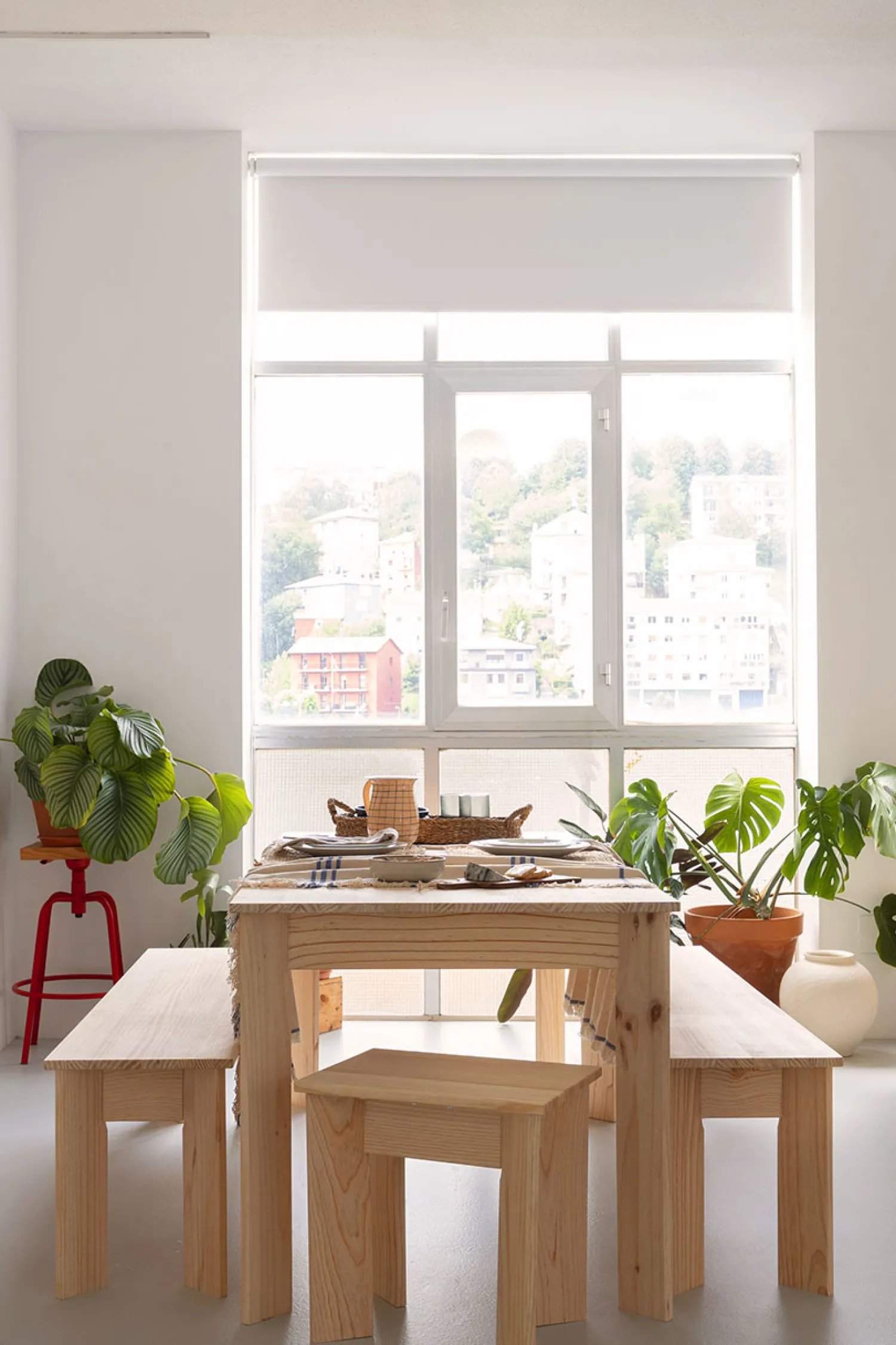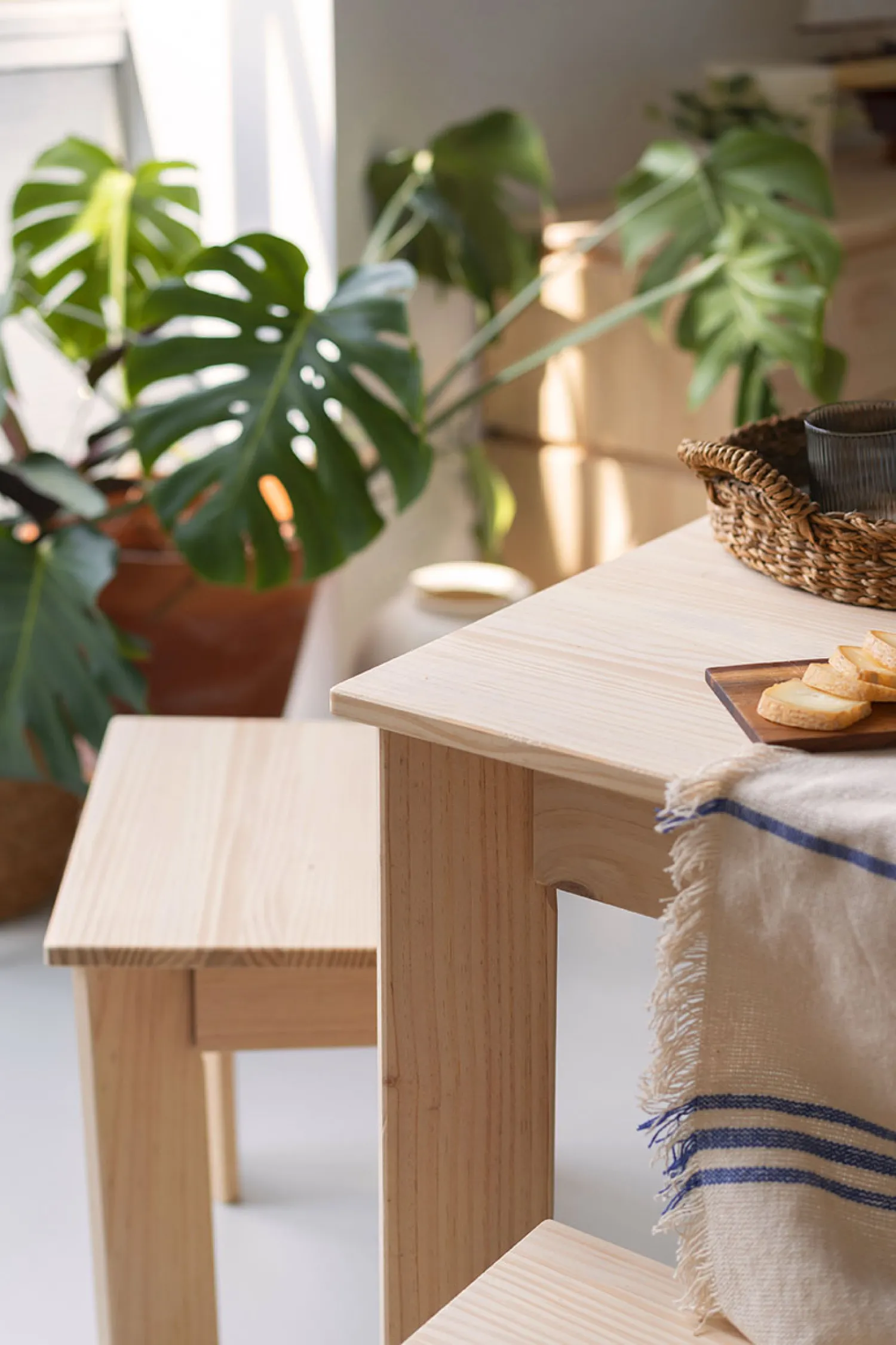 Madera natural, sin tintes ni barnices, lijada con máquina, lista para disfrutar al tacto y a la vista. Aunque como todas las maderas naturales, es un material con una superficie más delicada que las superficies sintéticas. Por eso conviene mimarla de vez en cuando.