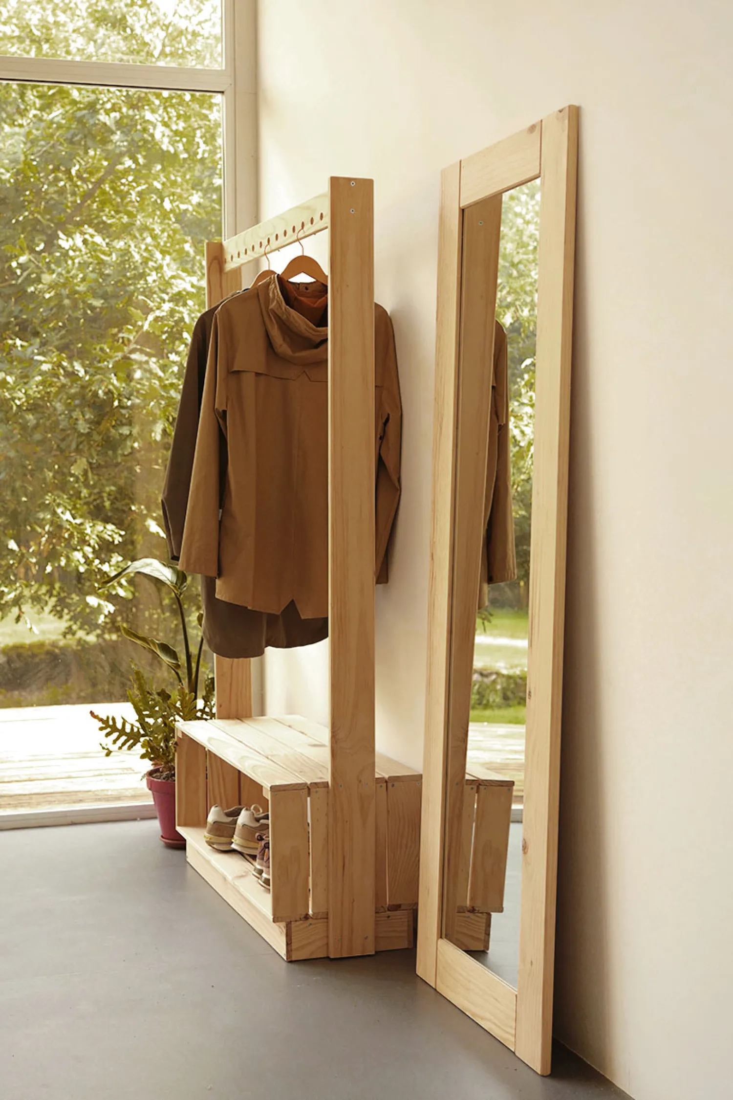 Este es un mueble sostenible y reciclable con certificación PEFC. Fabricado con madera maciza ecológica de pino insignis, procedente de bosques locales y sostenibles.