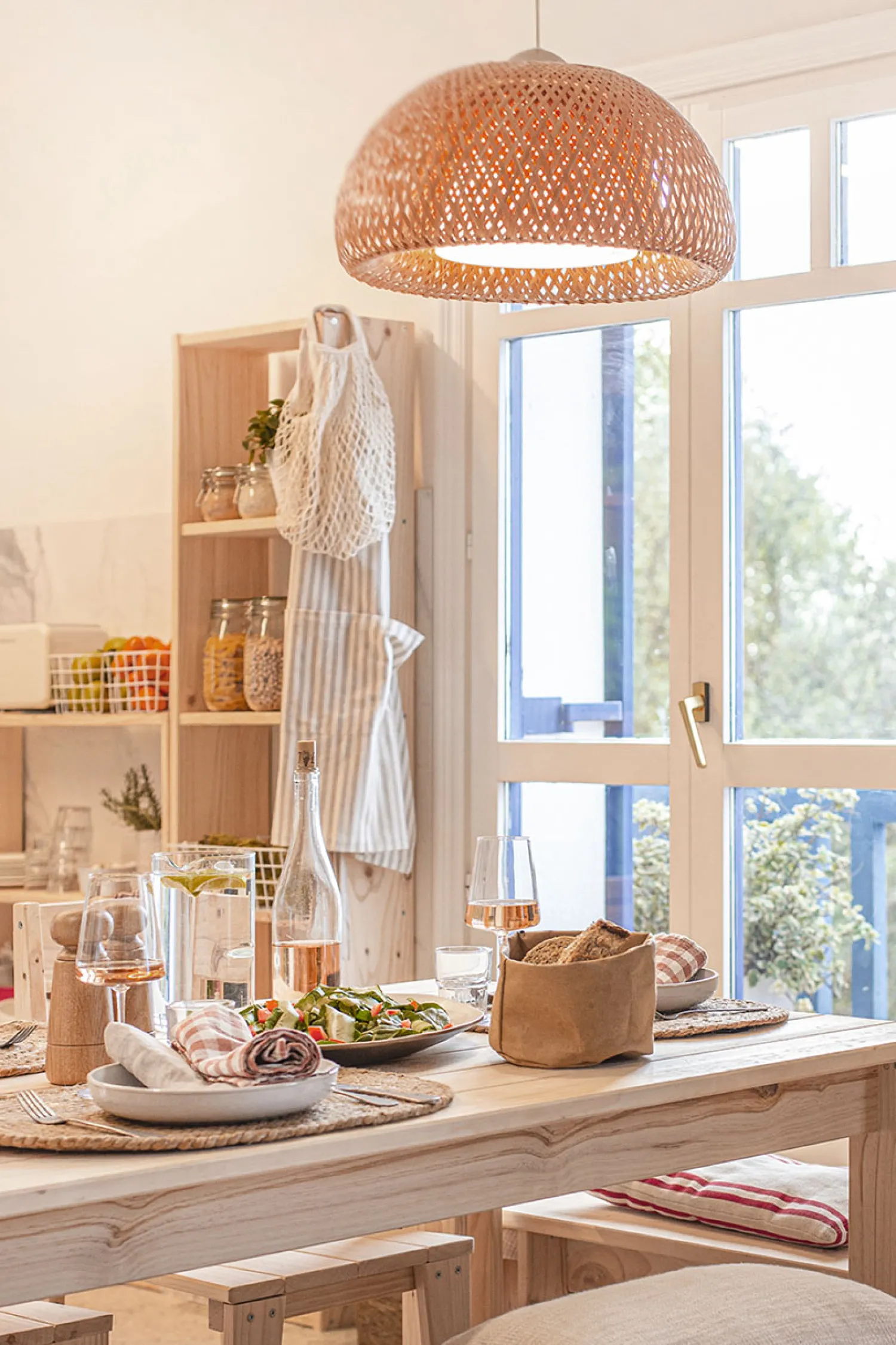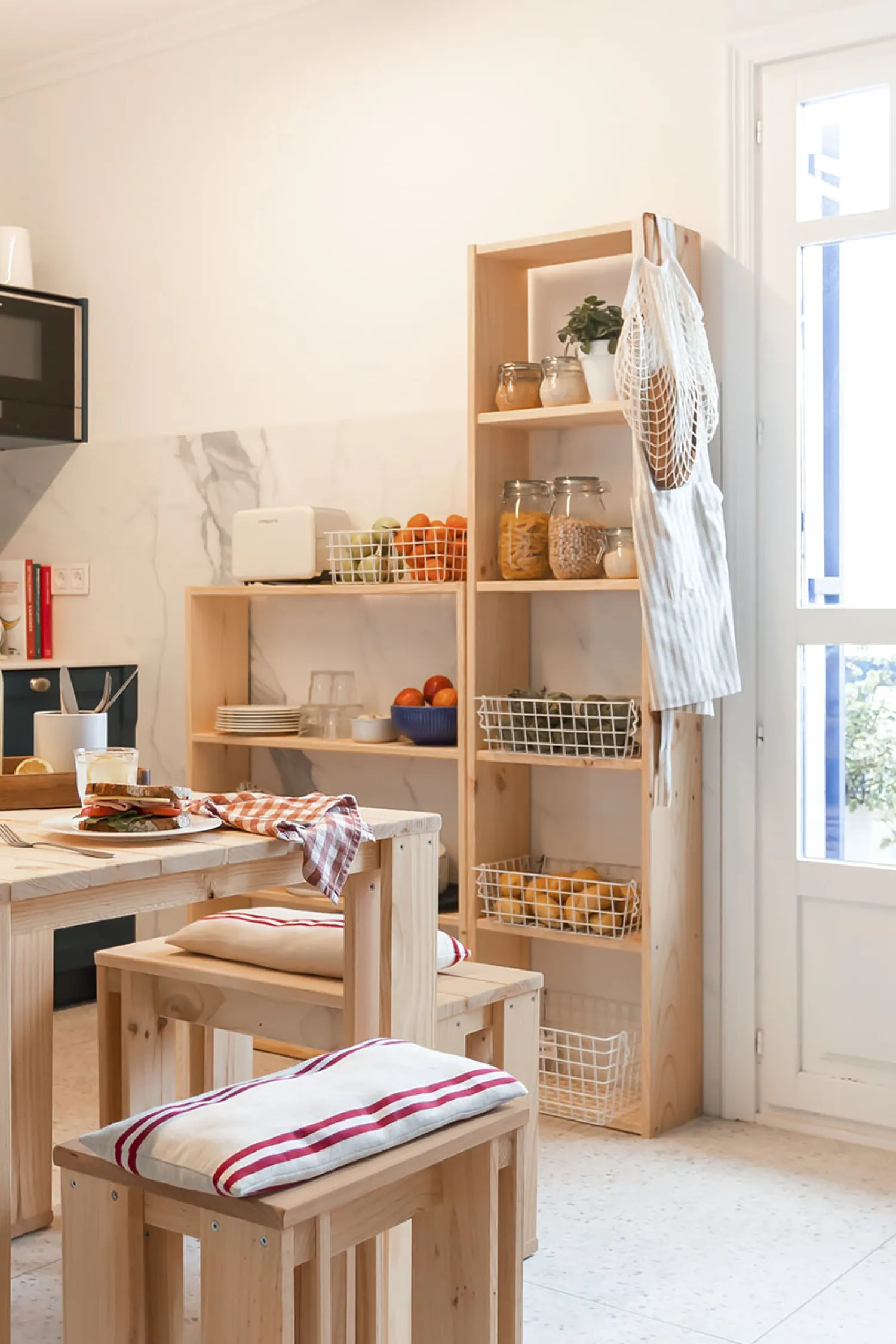 Madera natural, sin tintes ni barnices, lijada con máquina, lista para disfrutar al tacto y a la vista. Aunque como todas las maderas naturales, es un material con una superficie más delicada que las superficies sintéticas. Por eso conviene mimarla de vez en cuando.