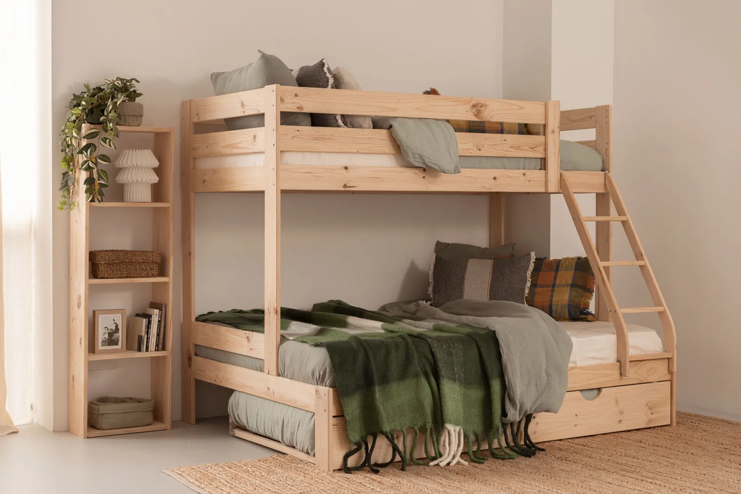 – La escalera se puede montar en el lado izquierdo o derecho de la litera.