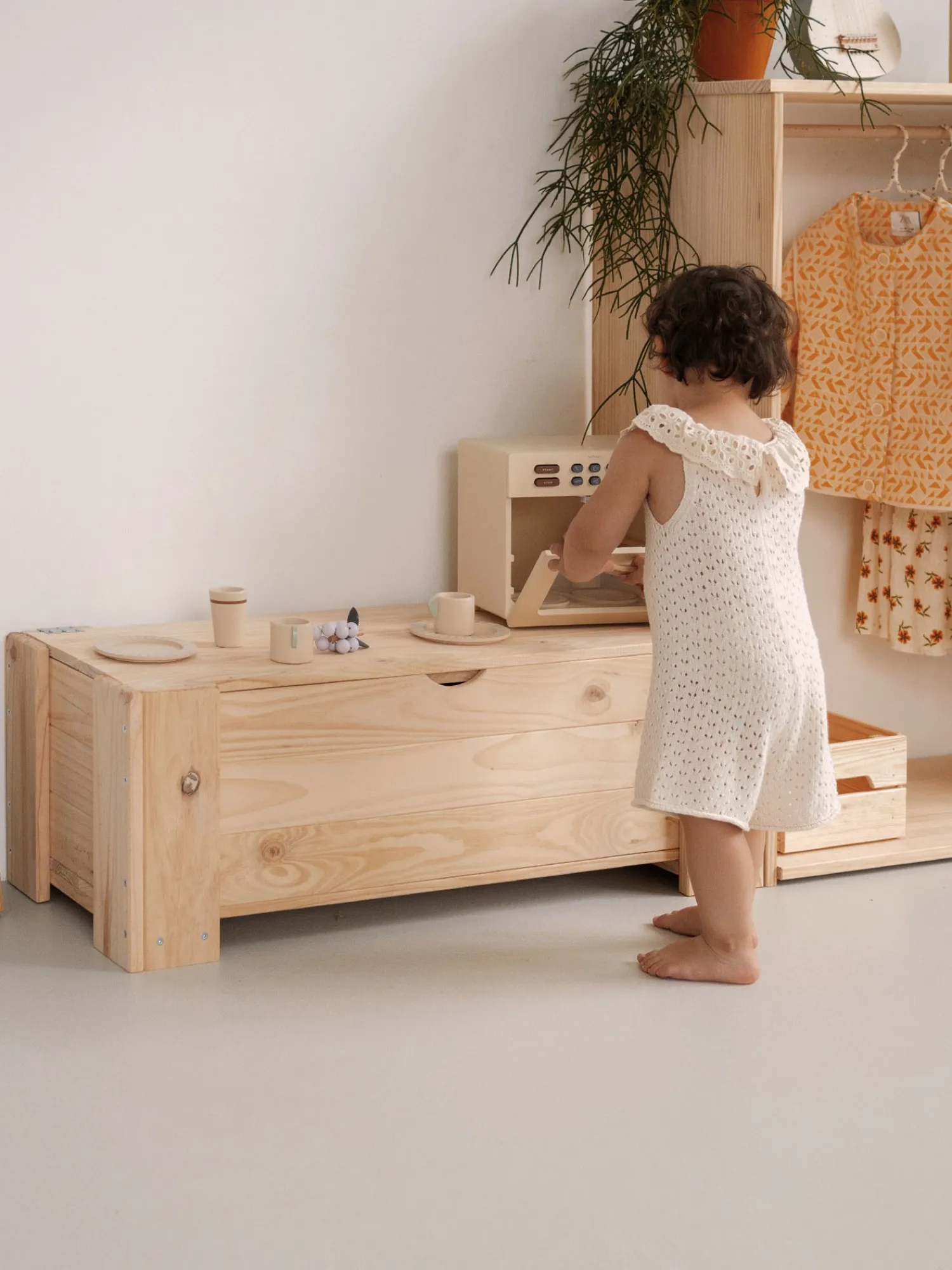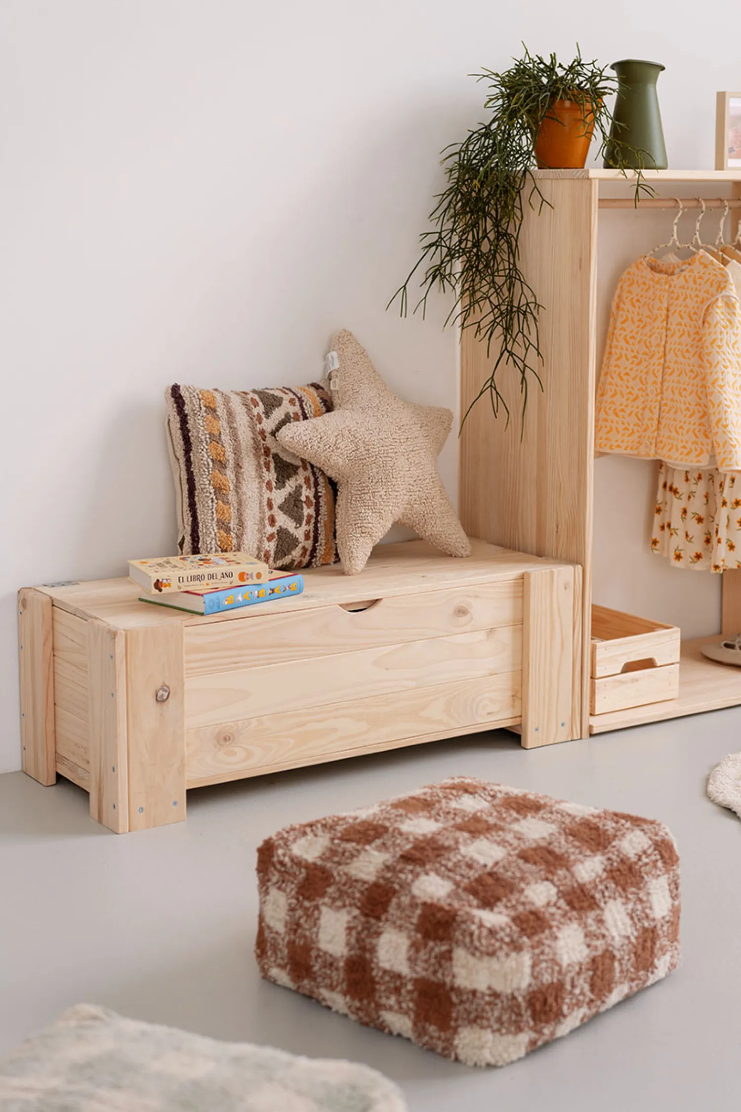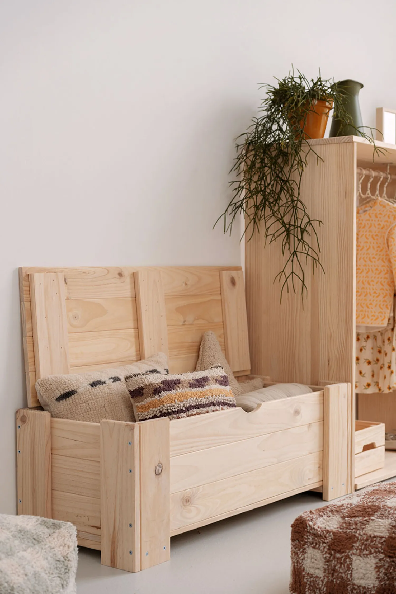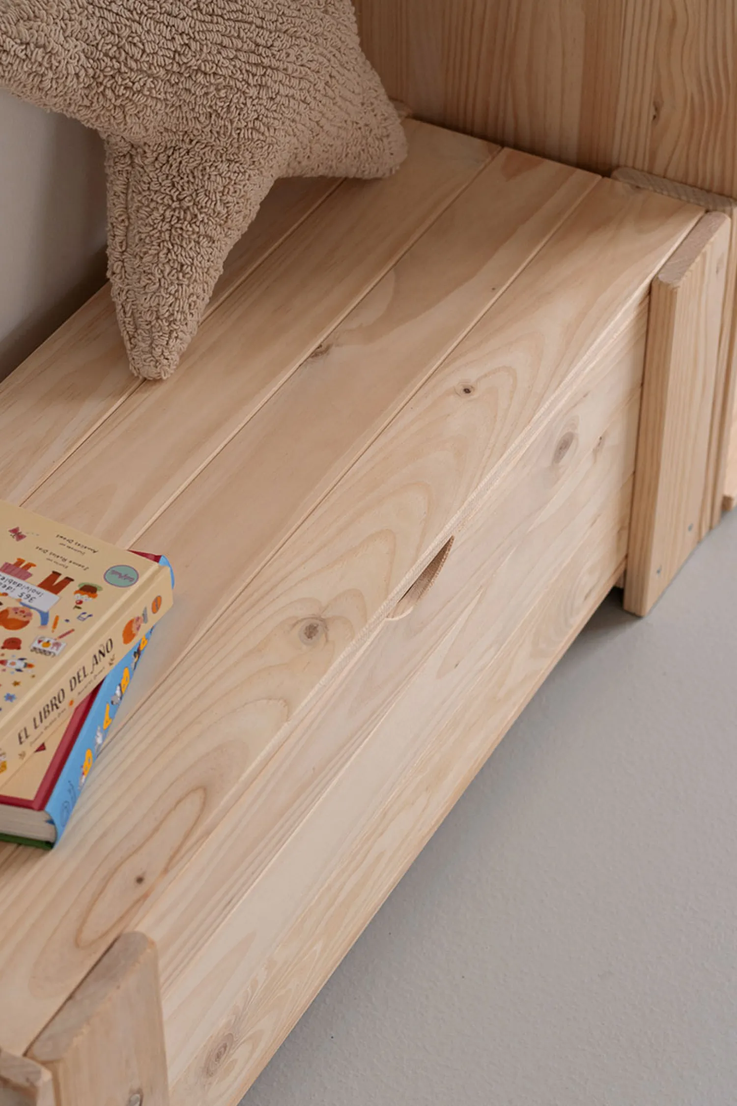 Este es un mueble sostenible y reciclable con certificación PEFC. Fabricado con madera maciza ecológica de pino insignis, procedente de bosques locales y sostenibles.