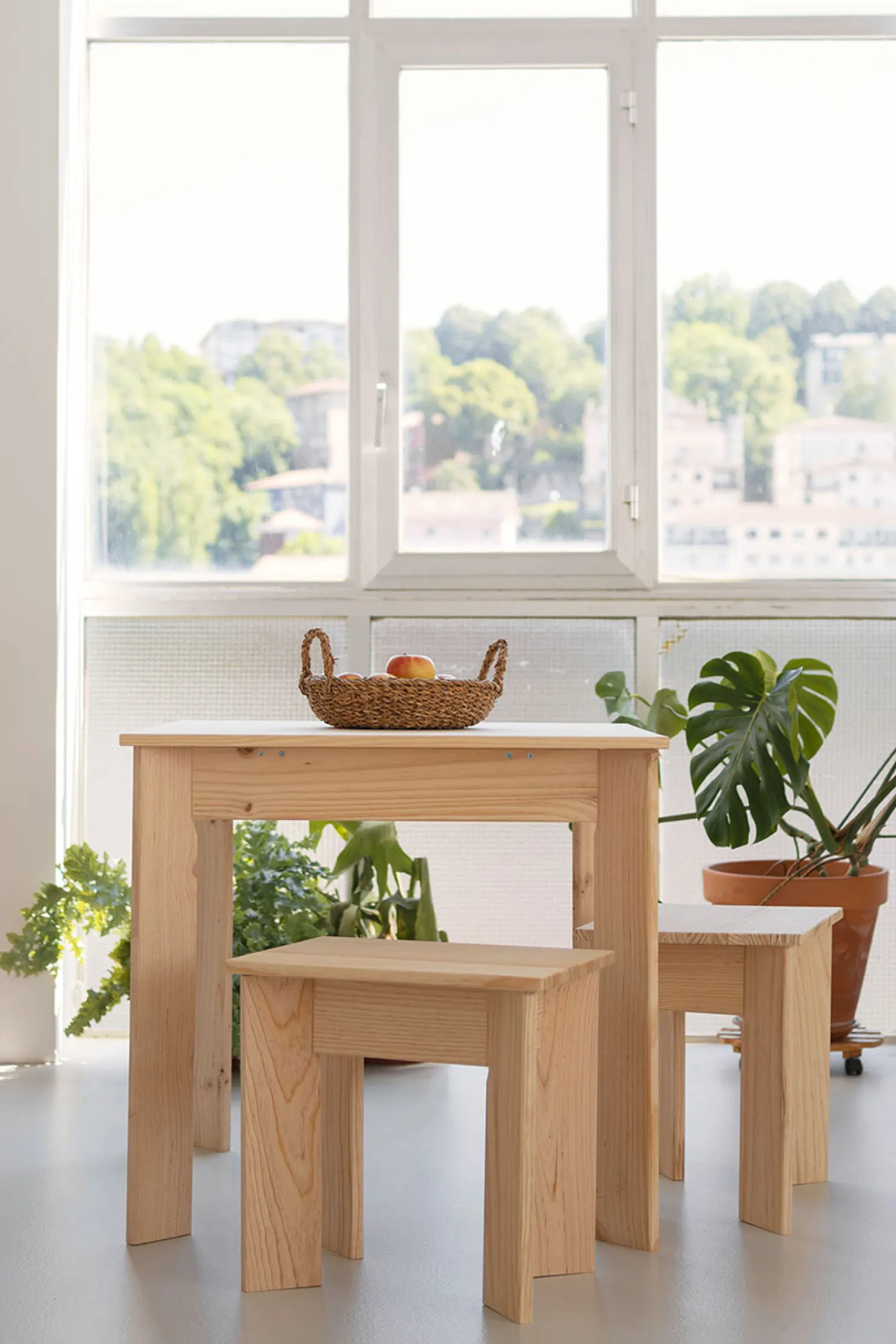 Madera natural, sin tintes ni barnices, lijada con máquina, lista para disfrutar al tacto y a la vista. Aunque como todas las maderas naturales, es un material con una superficie más delicada que las superficies sintéticas. Por eso conviene mimarla de vez en cuando.