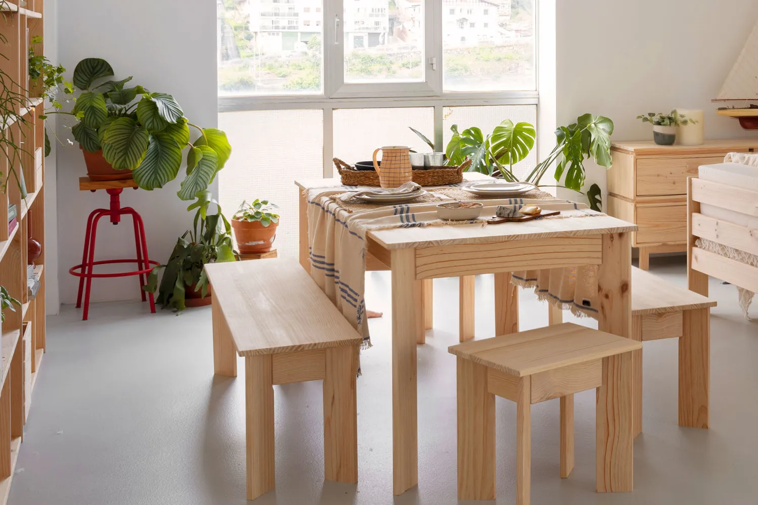 Este es un mueble sostenible y reciclable con certificación PEFC. Fabricado con madera maciza ecológica de pino insignis, procedente de bosques locales y sostenibles.