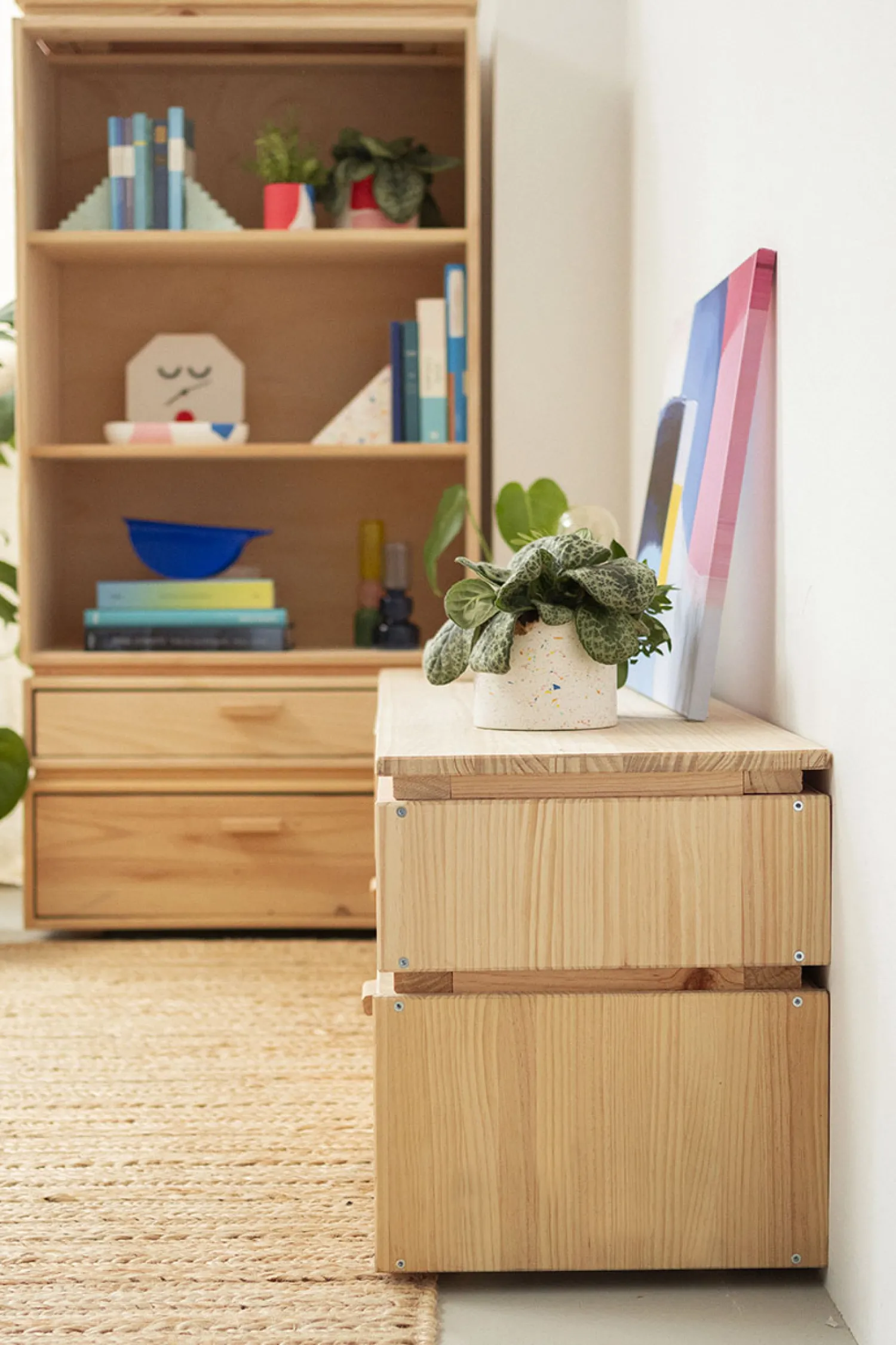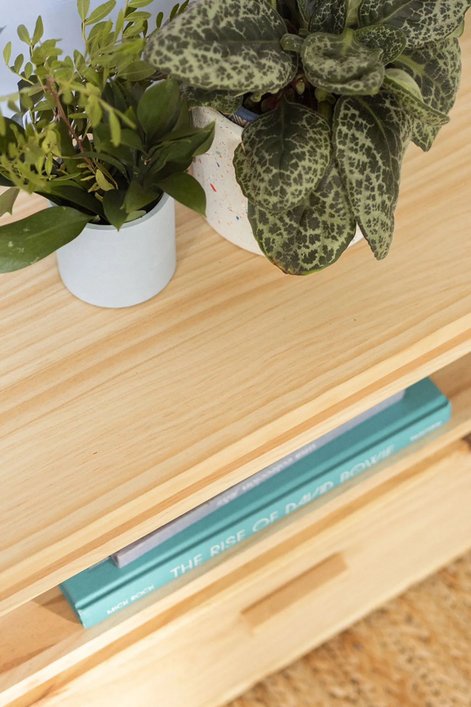Este es un mueble sostenible y reciclable con certificación PEFC. Fabricado con madera maciza ecológica de pino insignis, procedente de bosques locales y sostenibles.