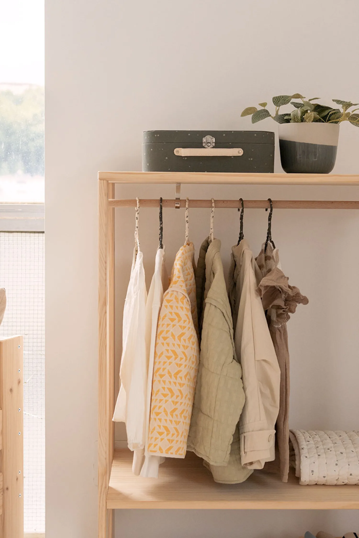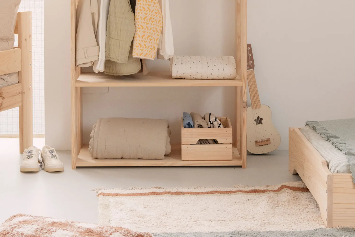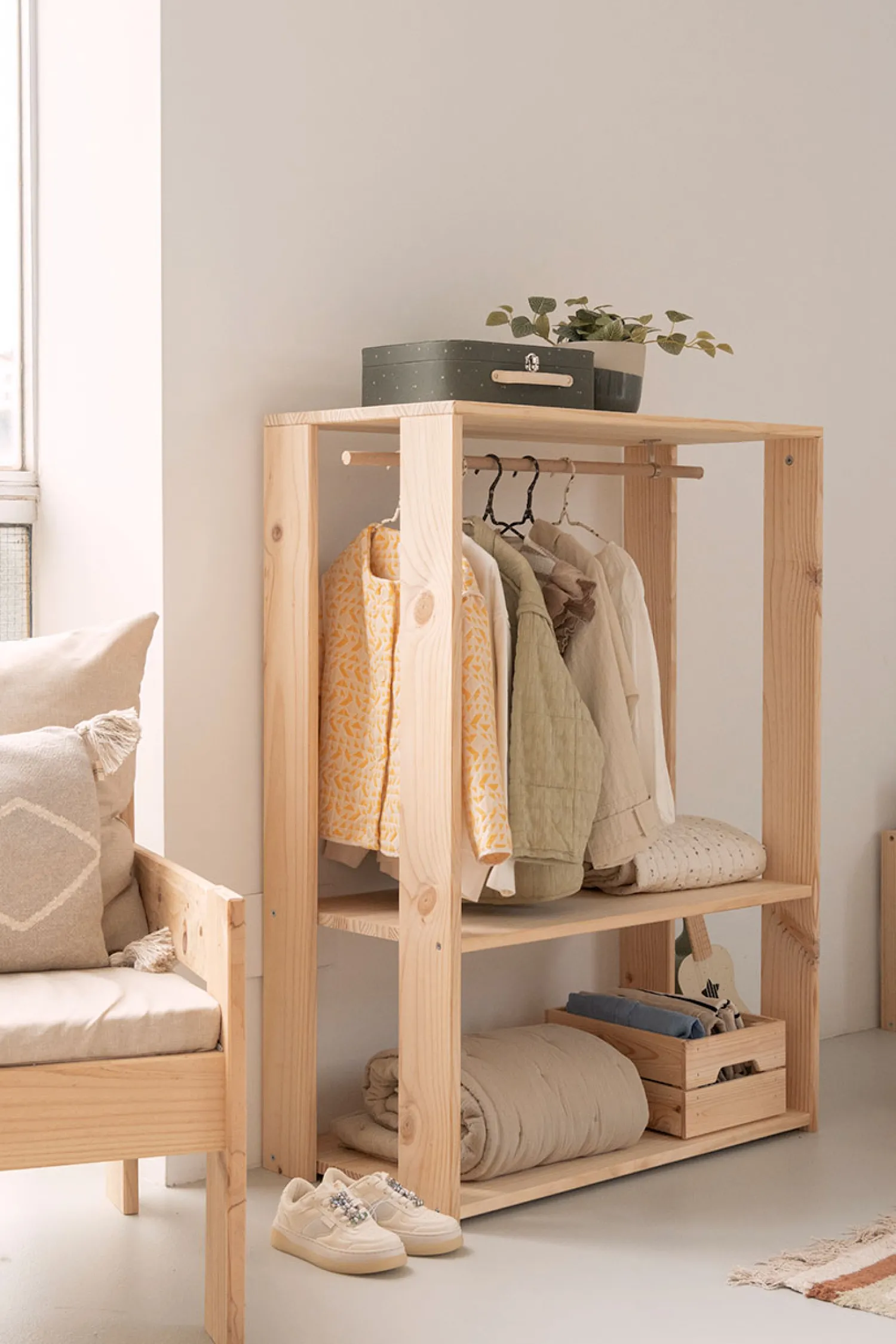 Este es un mueble sostenible y reciclable con certificación PEFC. Fabricado con madera maciza ecológica de pino insignis, procedente de bosques locales y sostenibles.