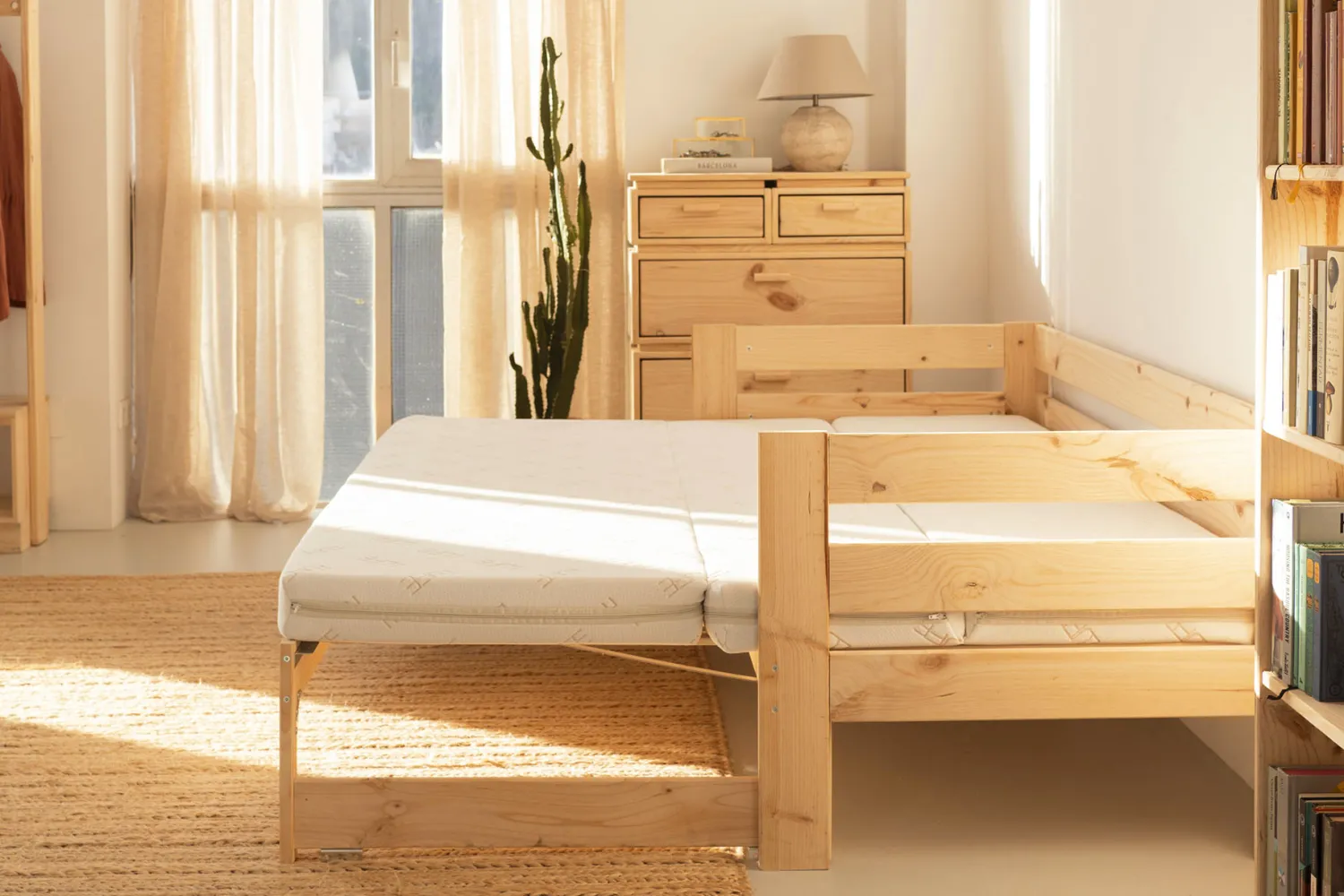 Colchón plegable para nuestro sofá cama LORE. Un colchón de 10 cm de grosor con superficie de acolchado supersoft y viscoelástica crema, con interior de espuma de 26 Kg/m3 densidad dura y núcleo HR (alta resilencia) para mayor flexibilidad, resistencia y amortiguación. Recubierto con tejido strech libre de tóxicos. Lleva una protector con cremallera para una mejor higiene e incluye funda decorativa en blanco crudo 100% algodón.