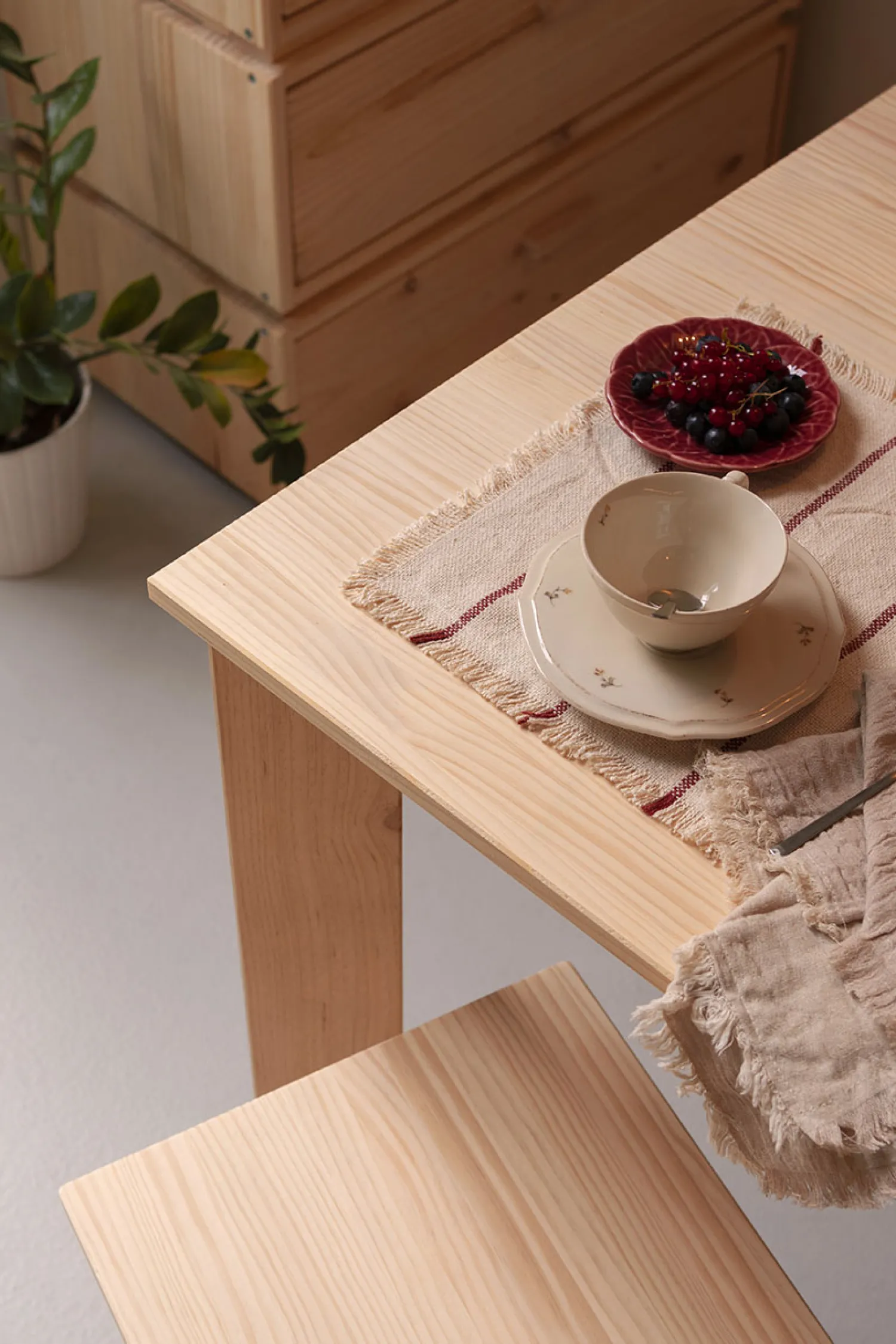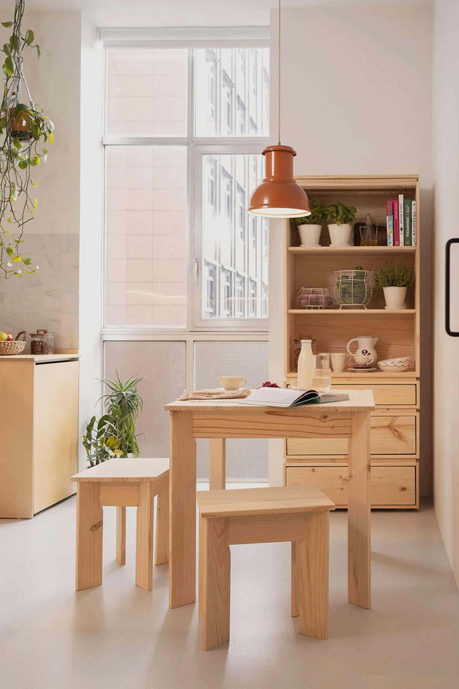 Este es un mueble sostenible y reciclable con certificación PEFC. Fabricado con madera maciza ecológica de pino insignis, procedente de bosques locales y sostenibles.