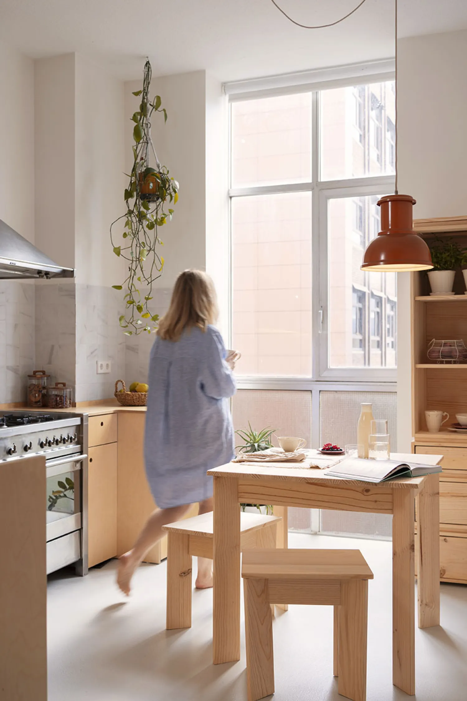 Madera natural, sin tintes ni barnices, lijada con máquina, lista para disfrutar al tacto y a la vista. Aunque como todas las maderas naturales, es un material con una superficie más delicada que las superficies sintéticas. Por eso conviene mimarla de vez en cuando.