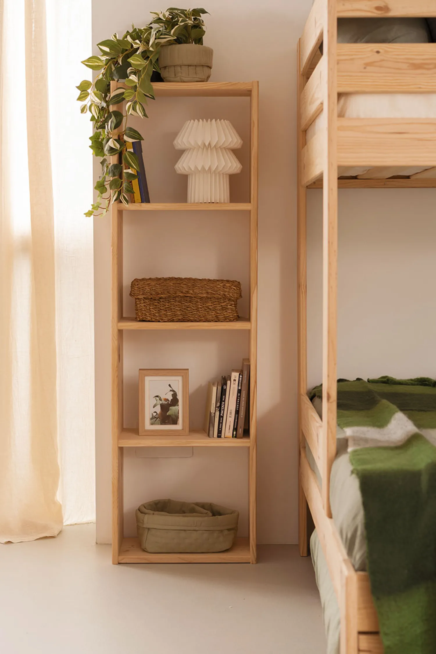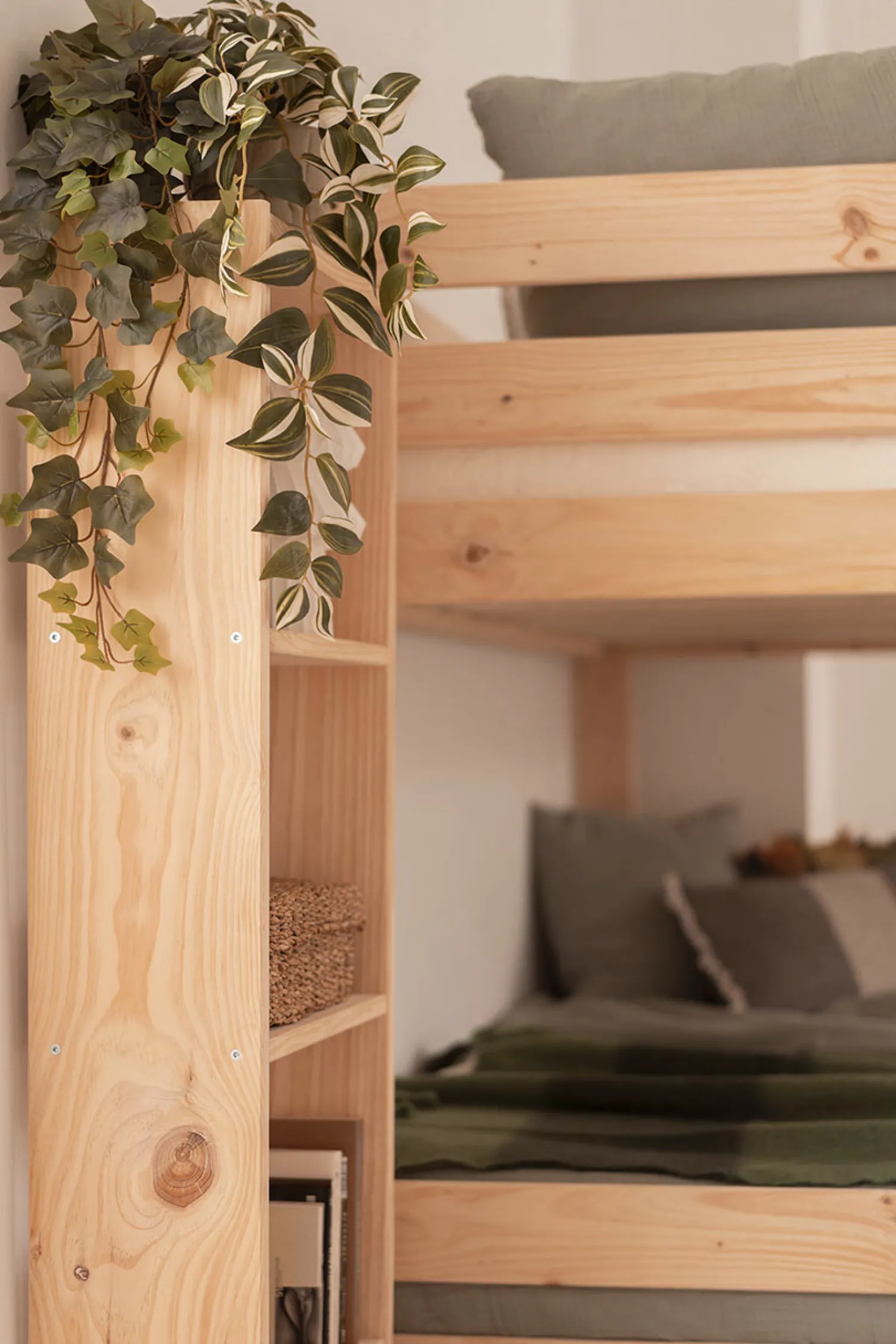 Este es un mueble sostenible y reciclable con certificación PEFC. Fabricado con madera maciza ecológica de pino insignis, procedente de bosques locales y sostenibles.