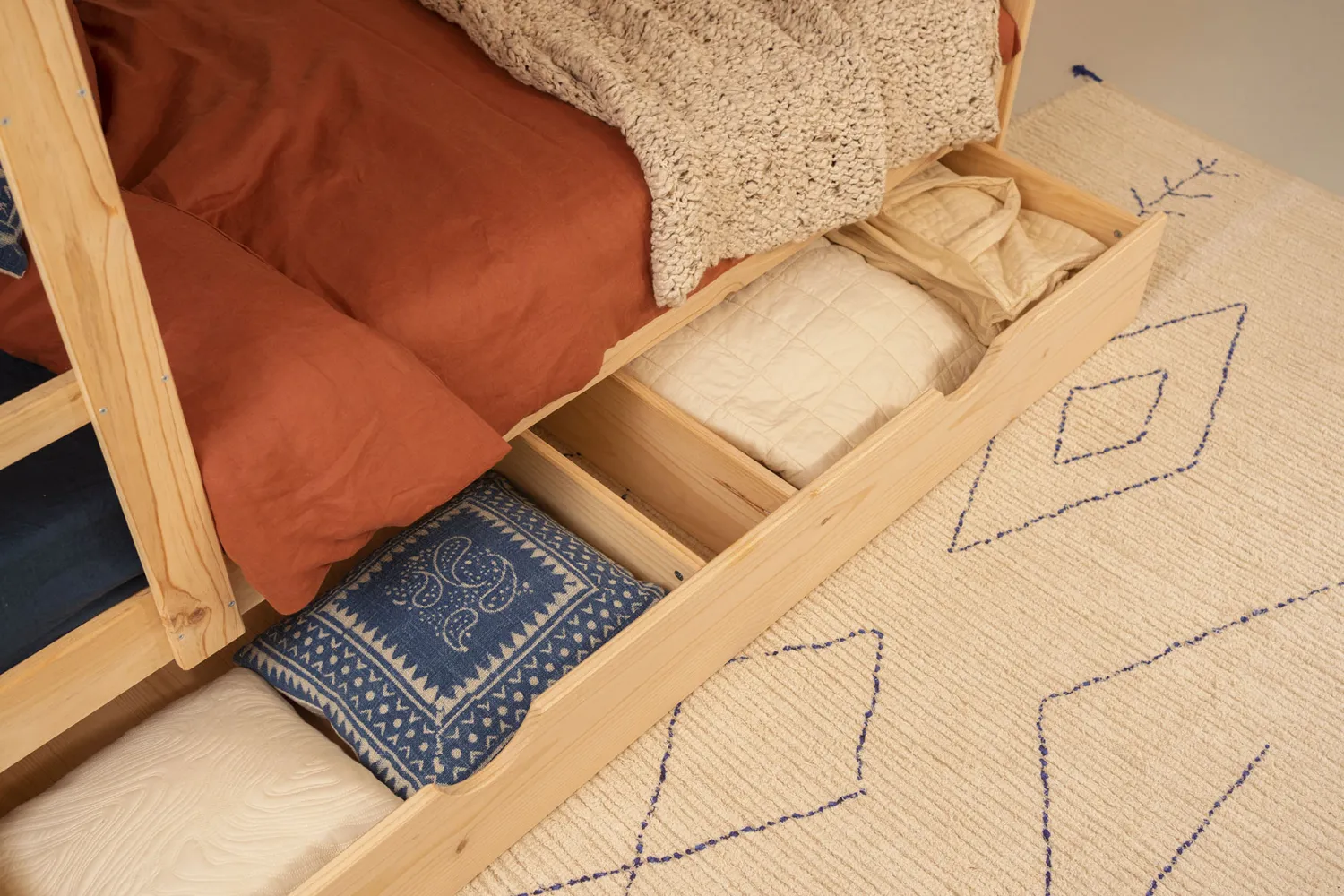 Madera natural, sin tintes ni barnices, lijada con máquina, lista para disfrutar al tacto y a la vista. Aunque como todas las maderas naturales, es un material con una superficie más delicada que las superficies sintéticas. Por eso conviene mimarla de vez en cuando.