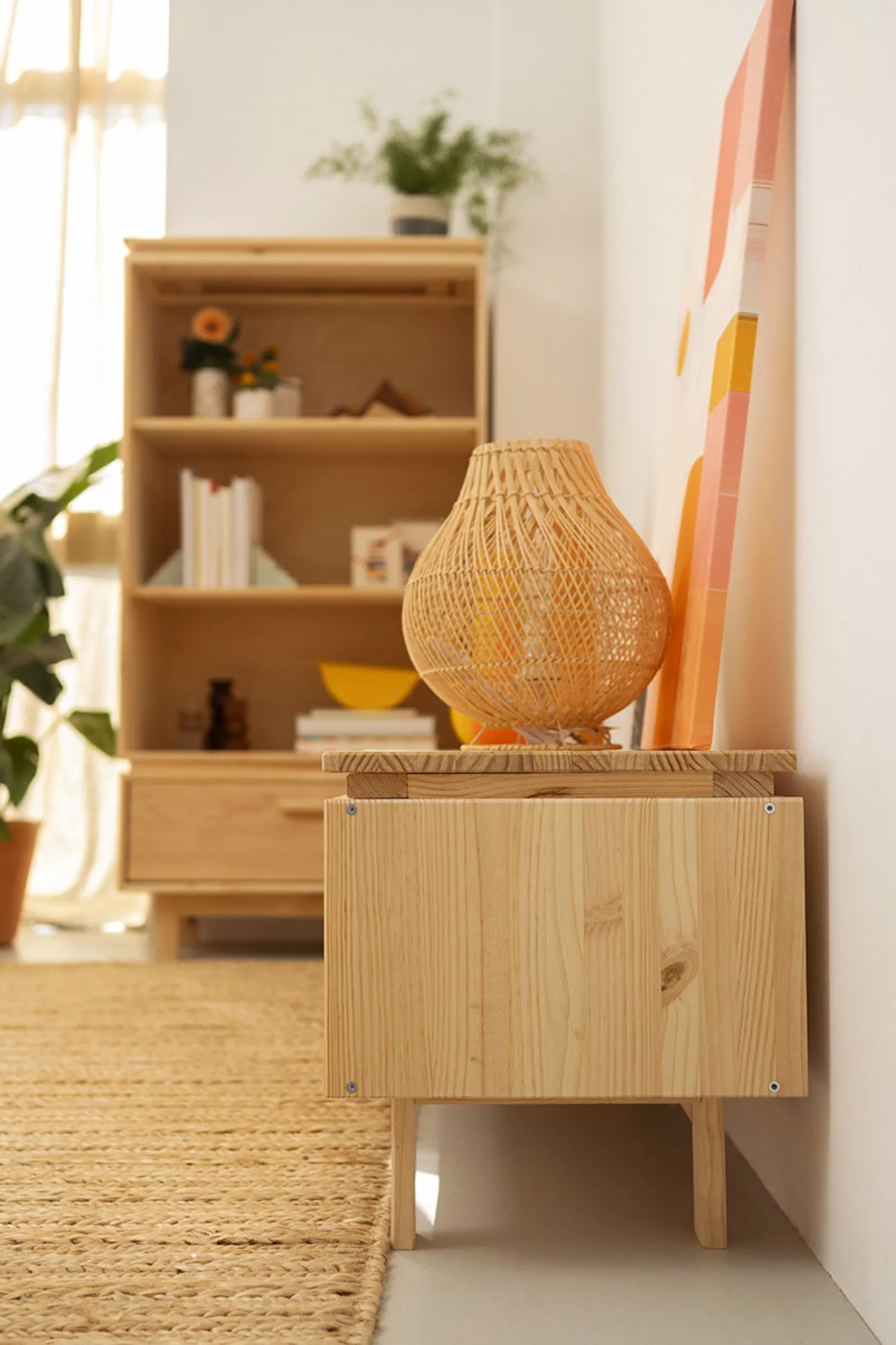 Este es un mueble sostenible y reciclable con certificación PEFC. Fabricado con madera maciza ecológica de pino insignis, procedente de bosques locales y sostenibles.
