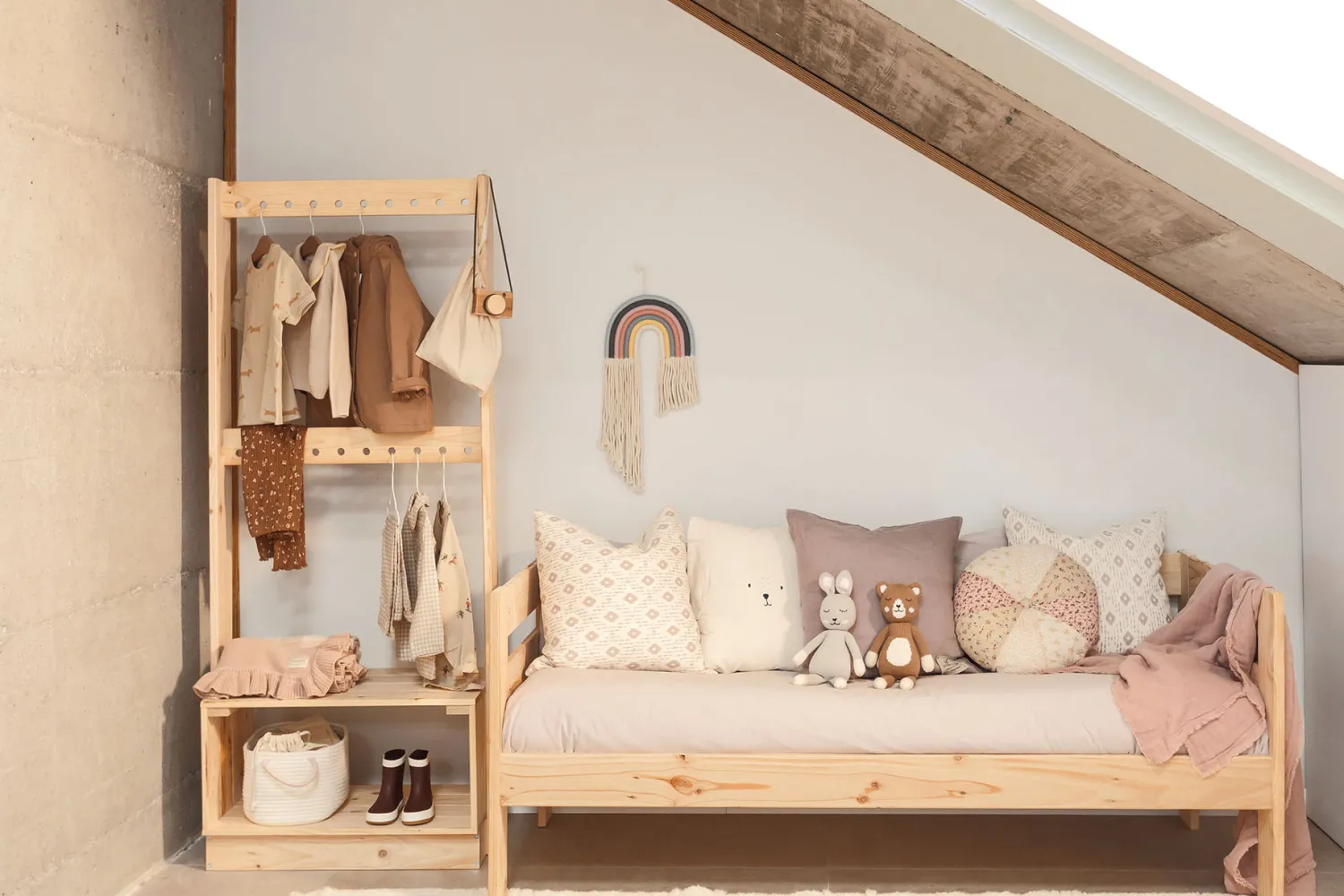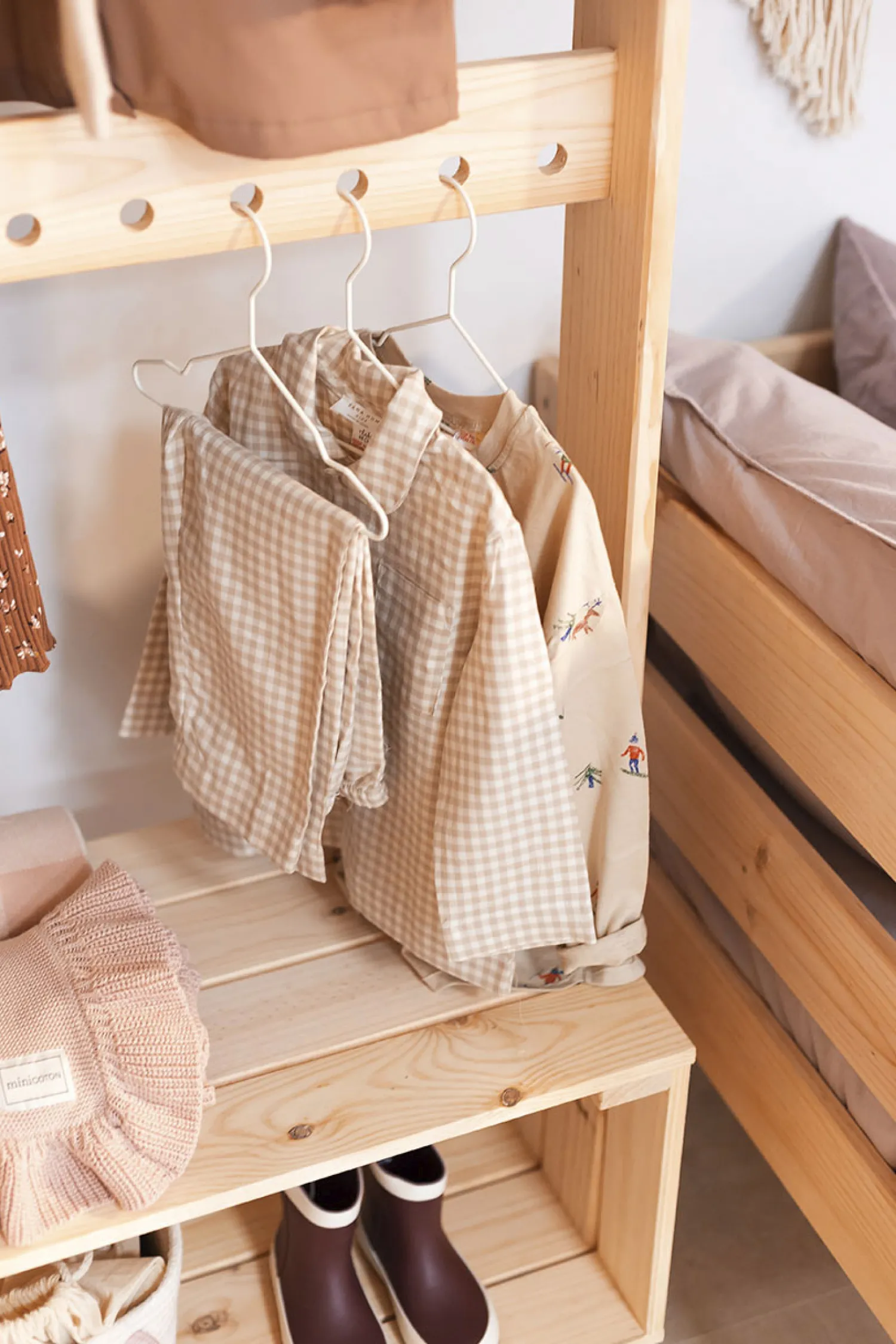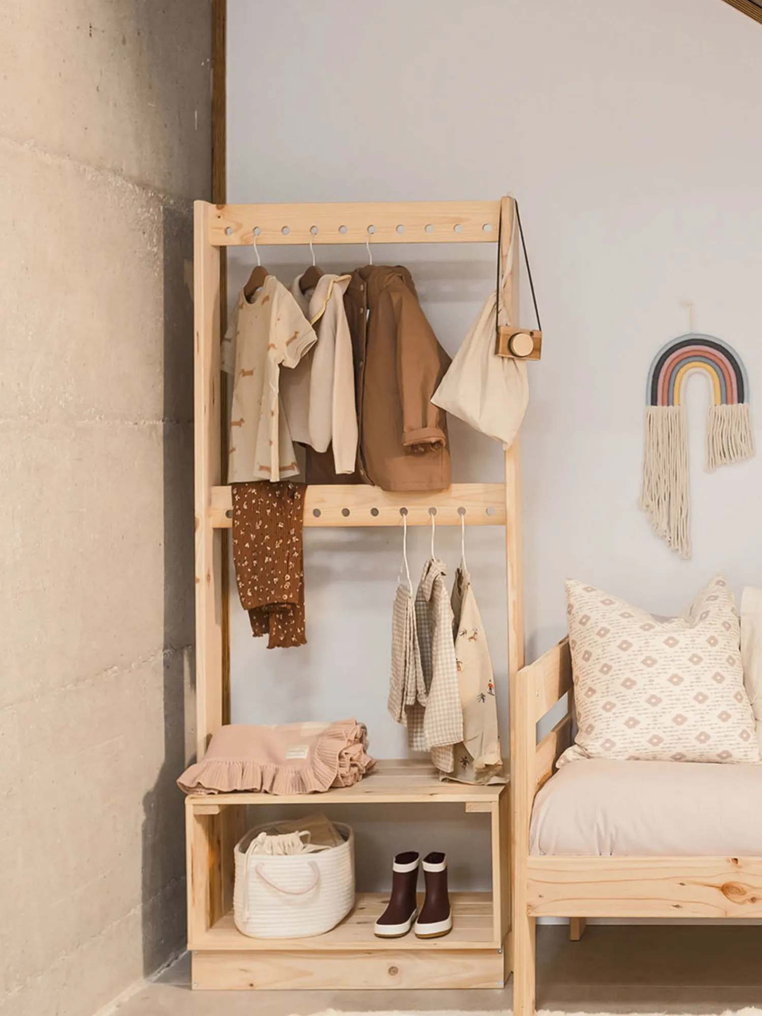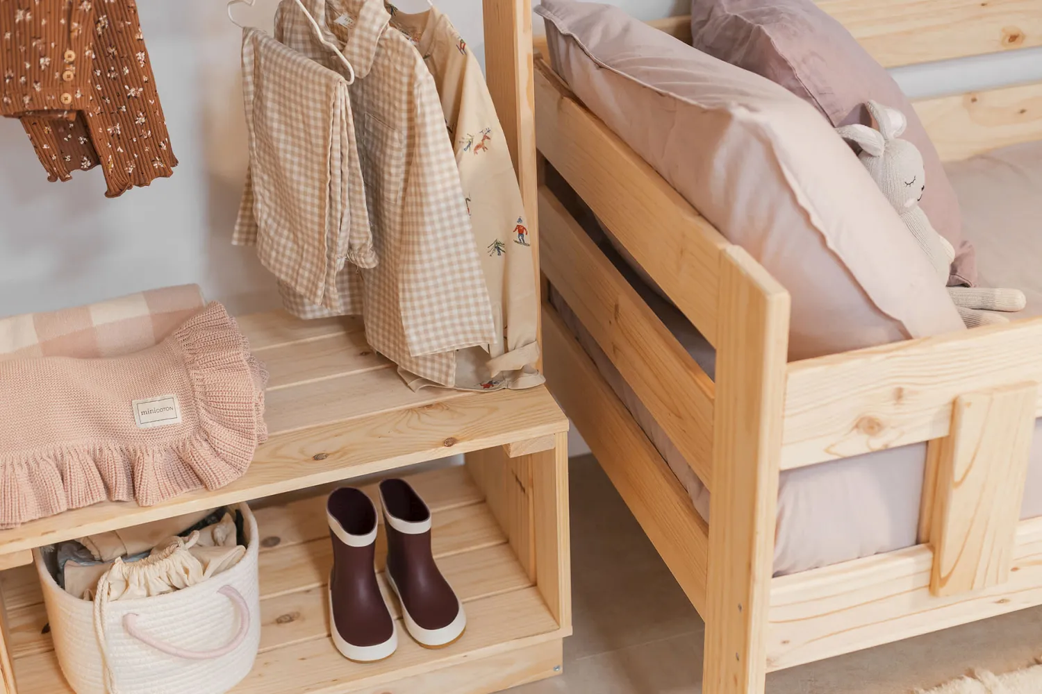 Este es un mueble sostenible y reciclable con certificación PEFC. Fabricado con madera maciza ecológica de pino insignis, procedente de bosques locales y sostenibles.