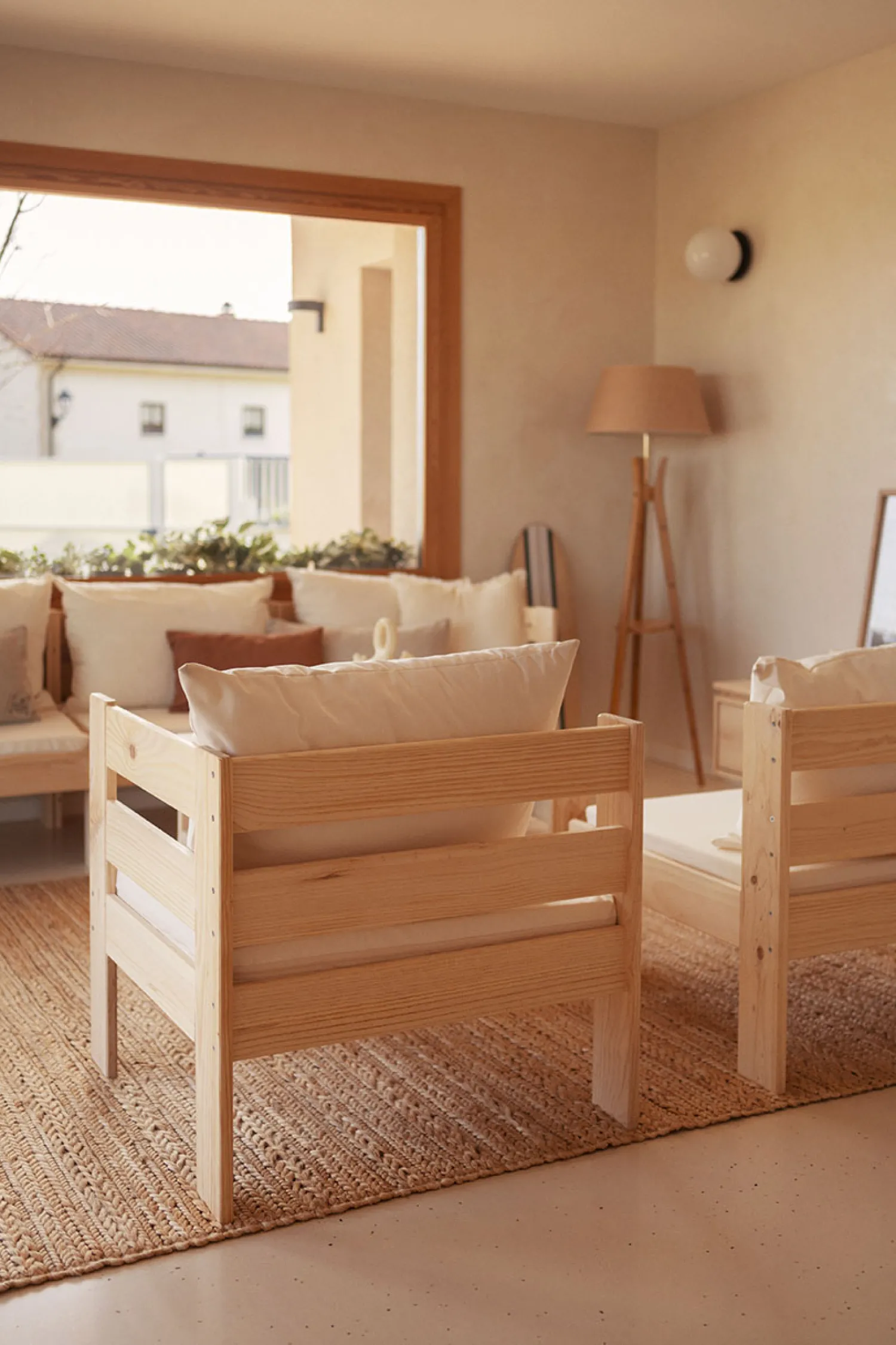 – Incluye la estructura de madera, los cojines base y respaldo y la funda que elijas.