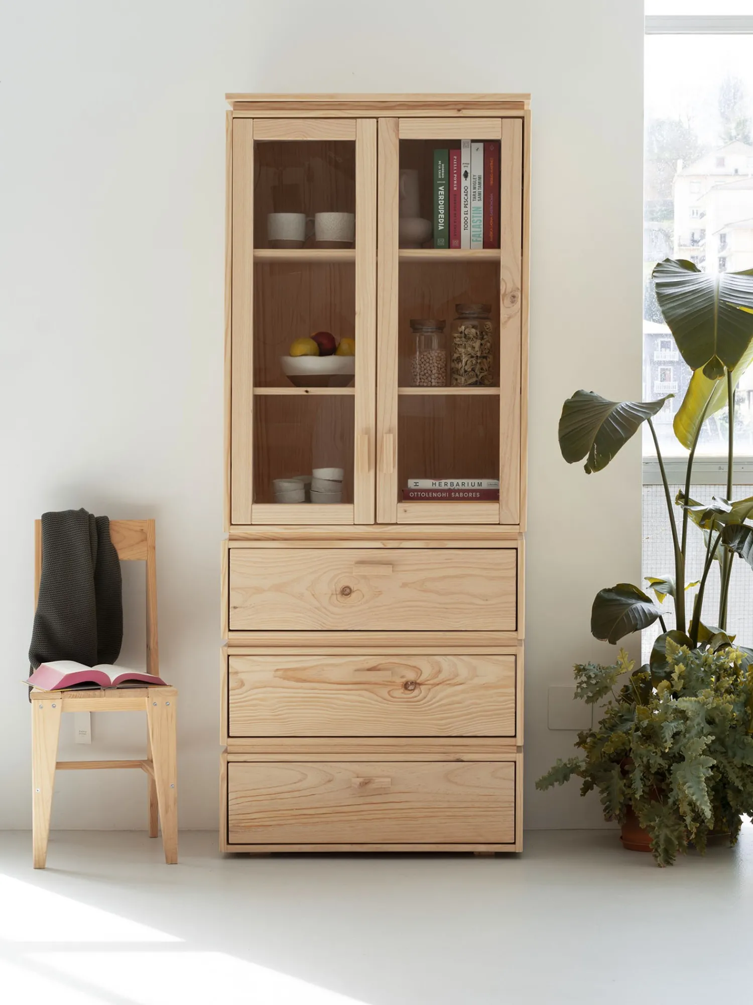 Este es un mueble sostenible y reciclable con certificación PEFC. Fabricado con madera maciza ecológica de pino insignis, procedente de bosques locales y sostenibles.